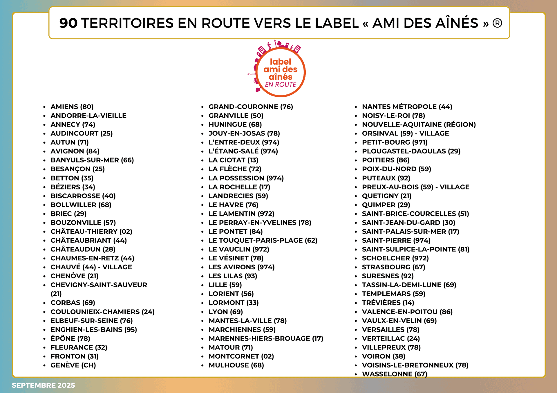 Ce label valorise les dynamiques locales innovantes, tout en apportant un cadre méthodologique solide pour accompagner les territoires dans l’élaboration de politiques publiques inclusives, transversales et durables. Il garantit une lecture claire des étapes à franchir, tout en favorisant l’amélioration continue des actions menées en faveur du vieillissement actif.